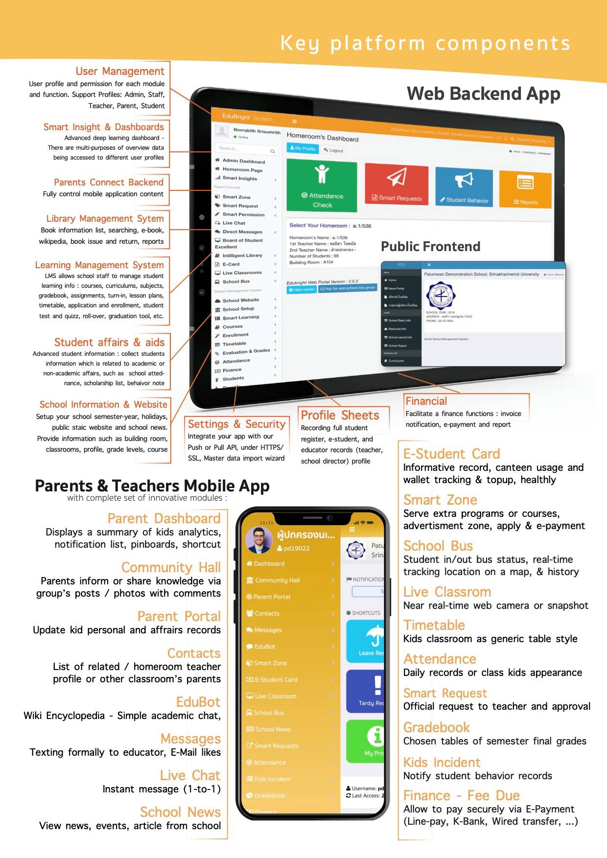 Advanced cloud-based school administration solution that empower total school information management on a single portal, with variety of functions.